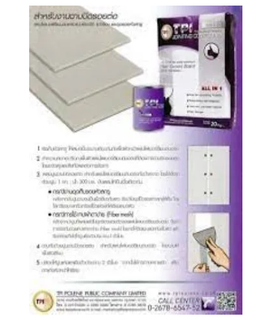 - นำไปฉาบบริเวณรอยต่อของแผ่นไฟเบอร์ซีเมนต์โดยใช้เกรียงโป๊ว โดยฉาบให้เรียบและเต็มรอยต่อ