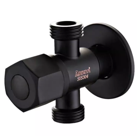 R04-วาล์วน้ำ วาล์วสามทางสแตนเลส วาล์วสแตนเลส 304 แท้ วาล์วฝักบัวสแตนเลส 304 สีดำ HA1005