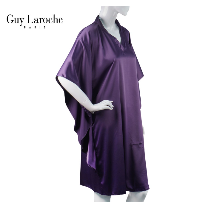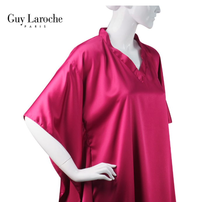GUY LAROCHE ชุดนอน MIDI เดรส กระโปรงทรงค้างคาวสั้น คอวี ไหล่ล้ำ ชุดอยู่บ้านแม่ชอบมาก เนื้อผ้าซาติน เนียน นุ่ม ลื่นเย็นสบาย ไม่ร้อน GV3769 เดรสคุณนาย