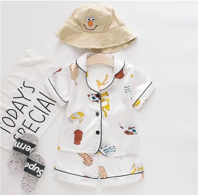 ?ชุดนอนเด็กลายน่ารักๆ เป็นเสื้อแขนสั้นกับกางเกงขาสั้น