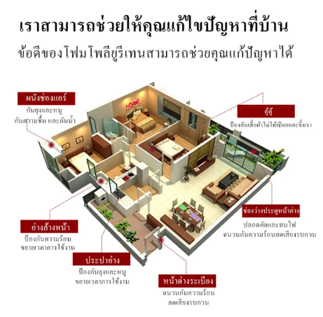 -เหมาะกับงานฉีดเติมเต็มในงานติดตั้งฉนวนรอยต่องานกรอบบานประตู หน้าต่าง ท่อระบายน้ำ ท่อระบายอากาศ ท่อแอร์ ห้องเก็บเสียง