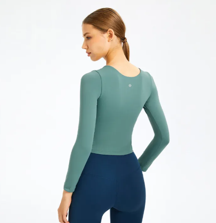 ข้อมูลเฉพาะของ Lulu เสื้อโยคะฤดูใบไม้ร่วงใหม่เสื้อผ้าโยคะของผู้หญิงคอวีบางยืดแน่นเปลือยกีฬาด้านบนด้วยแผ่นอกวิ่งเสื้อยืด