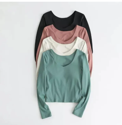SF128-เสื้อผ้าโยคะมีแผ่นปิดหน้าอกผู้หญิงแขนยาวรัดรูปฝึกพิลาทิสเสื้อฟิตเนสวิ่งกีฬา