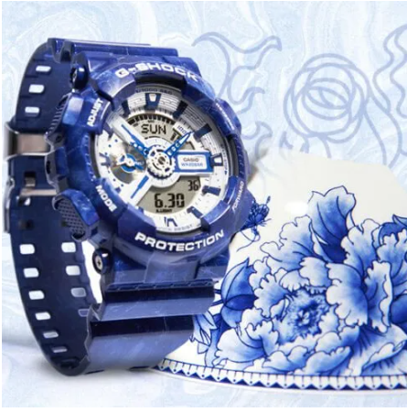 ความงามอันละเอียดอ่อนของลายครามจีนสีน้ำเงินและสีขาวที่เสริมด้วยความแข็งแกร่งอันเป็นที่สุดของ G-SHOCK หน้าปัดและสายโดดเด่นด้วยลวดลายสีน้ำเงินและสีขาวที่เฉลิมฉลองลวดลายเซรามิกที่ทุกคนคุ้นเคย ขณะที่การสลักบนฝาหลังชวนให้นึกถึงมังกรจีนที่กำลังเคลื่อนไหว ข้อมูลจำเพาะ