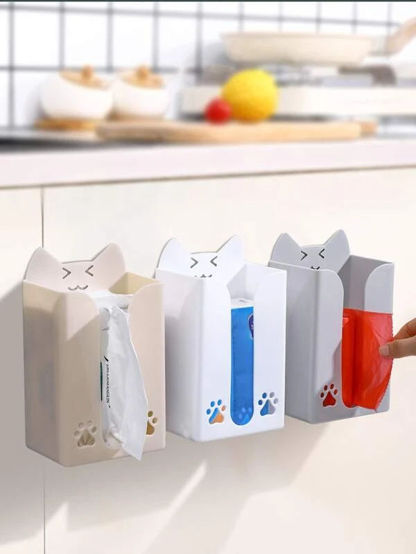 กล่องทิชชู่ พลาสติก เนื้อเยื่อ จัดเก็บ การออกแบบ การ์ตูนแมว ไม่ต้องพันช์ ติดผนัง สำหรับ ครัว 1 ชิ้น nn-32