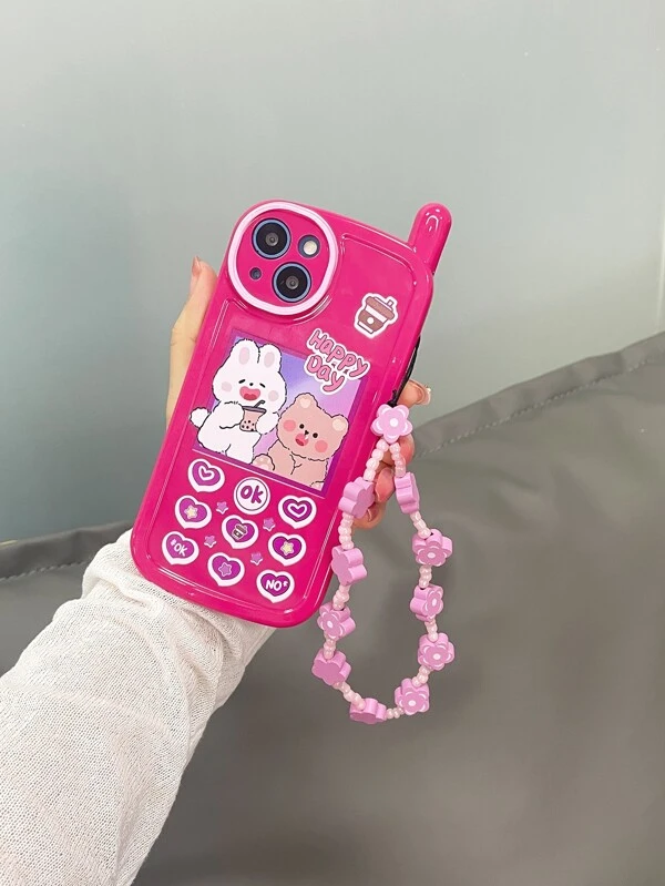 เคส โทรศัพท์ พิมพ์ การ์ตูน กระต่าย & หมี พร้อมสายคล้อง ค-27
