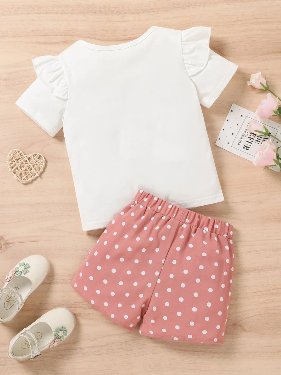 เด็กผู้หญิง เสื้อยืด นัวเนีย ลาย หัวใจ & กางเกงขาสั้น ลายจุด โบว์หน้า a-70