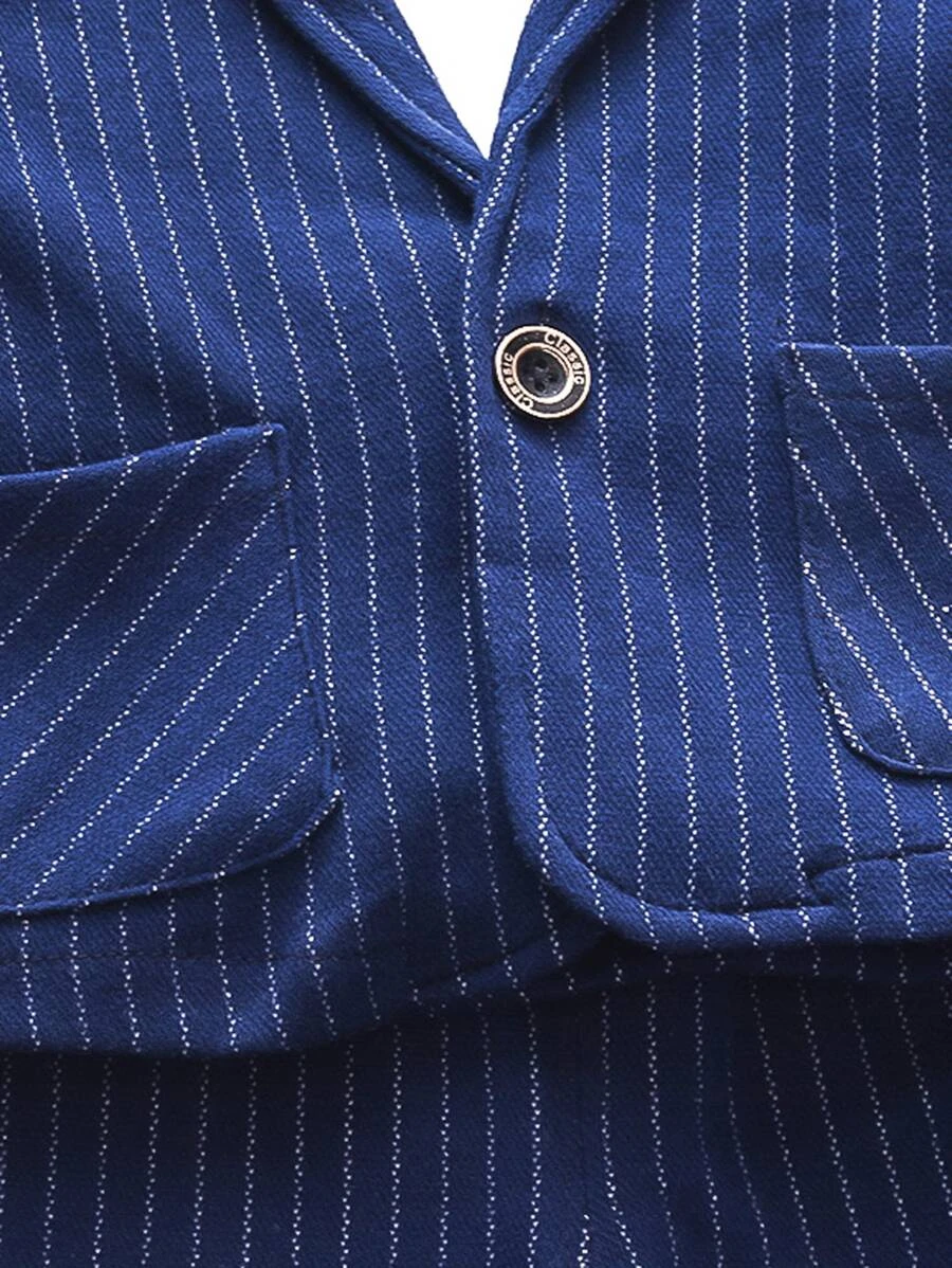 เด็กผู้ชายวัยหัดเดิน ตกแต่งลายปะ ลายทาง เสื้อสูท & โบว์หน้า เสื้อ & กางเกงขายาว b-3