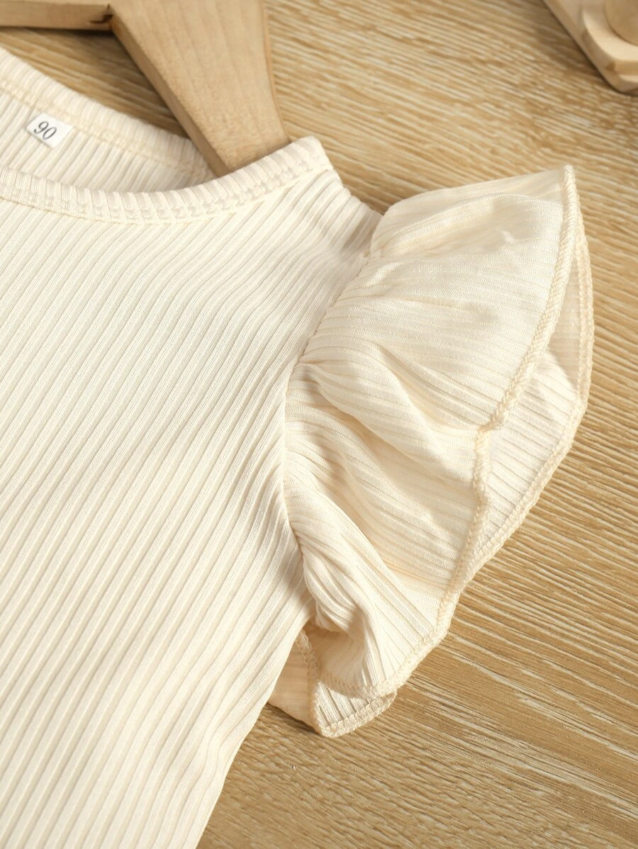 เด็กผู้หญิงวัยหัดเดิน ปลายระบาย เสื้อ & ลายดอกไม้ กางเกงขาบาน & ที่คาดผม a-66