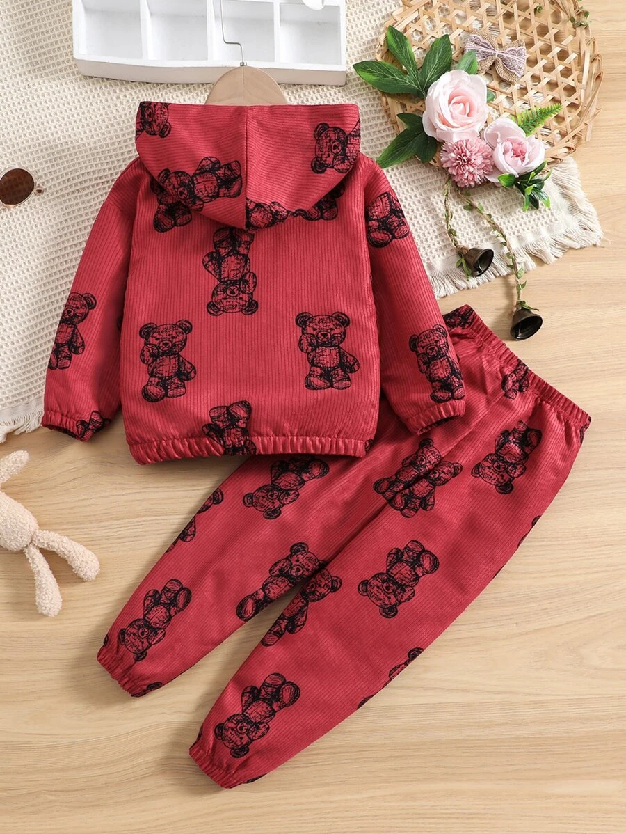 เด็กผู้หญิง แจ็คเก็ต พิมพ์ หมี ซับขนแกะ ฮูด & กางเกง a-76