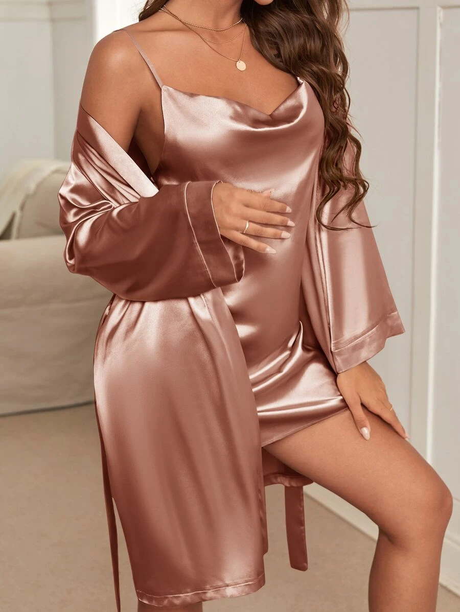 คอปก ผ้าซาติน คามิเดรส & เสื้อคลุมคาดเข็มขัด เซ็ตชุดนอน bb-82