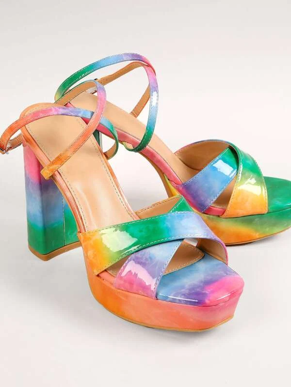 รองเท้าแตะ หลากหลาย สี เข็มขัดไขว้ สายหนัง แพลตฟอร์ม รองเท้าส้นสูง l-66