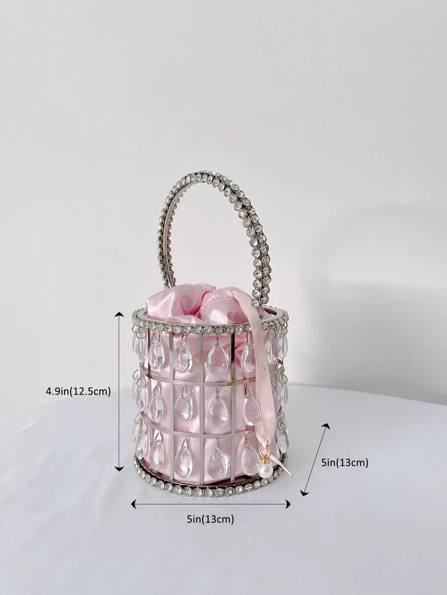 กระเป๋าถัง มินิ ตกแต่ง พลอยเทียม การออกแบบ เชือกรูด โซ่ v-89
