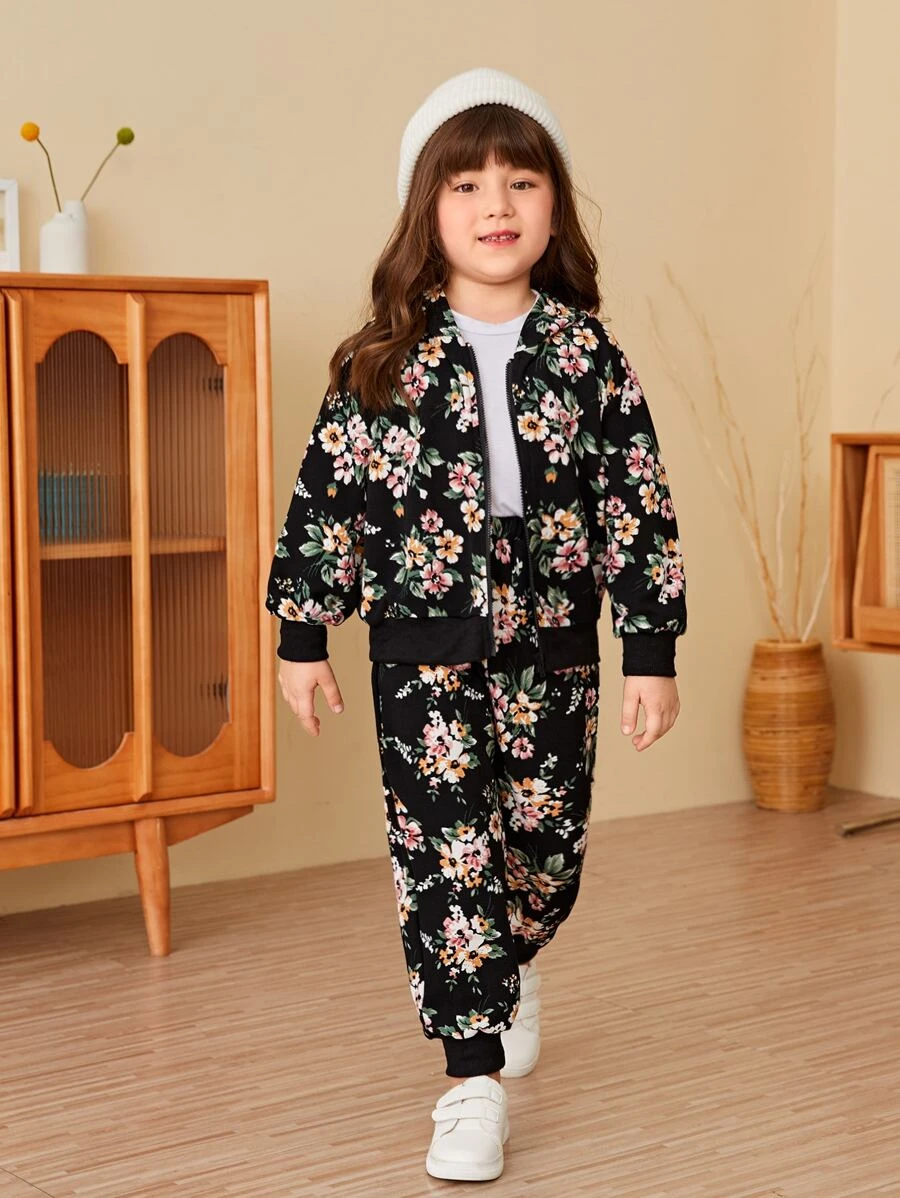 แจ็กเกต เด็กเล็กผู้หญิง ลายดอกไม้ บอมเบอร์ และ กางเกงวอร์ม a-78
