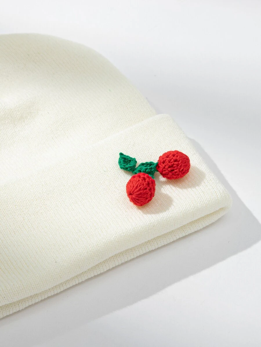 หมวกบีนนี่ ขอบพับ ตกแต่ง เชอร์รี่ i-76