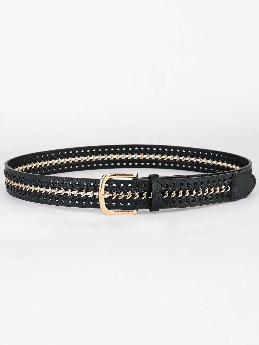 เข็มขัดบักเคิล แต่งโซ่ งานถัก ทรงเหลี่ยม l-088