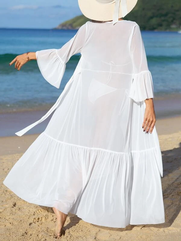 กิโมโน แขนแต่งระบาย สายผูกเอว ชายระบาย mm-58
