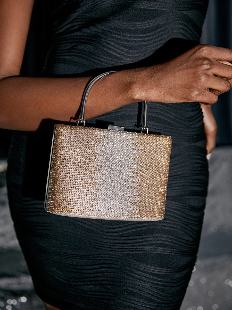 กระเป๋า แบบกล่อง มินิ ตกแต่ง พลอยเทียม v-98