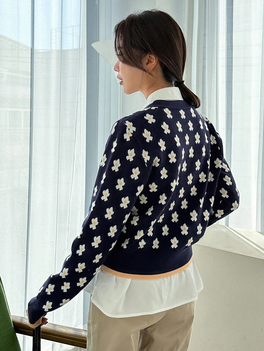 คาร์ดิแกน ลาย ดอกไม้ กระดุมแถวหน้า 1 ชิ้น i-021
