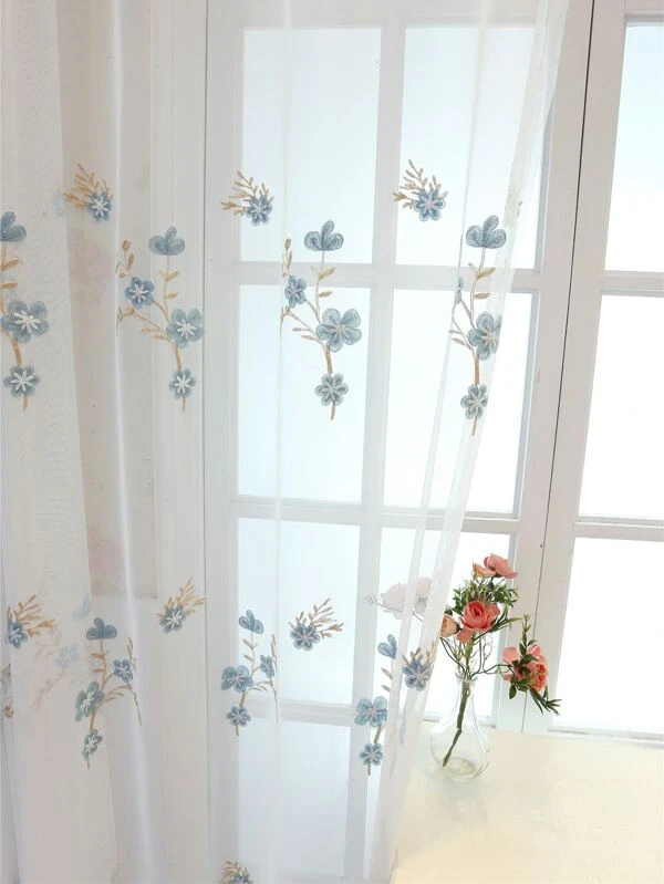 ผ้าม่าน ผ้าโปร่ง ปักดอกไม้ ผ142