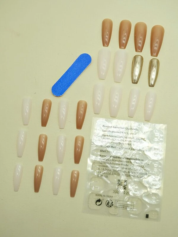 เล็บปลอม ยาว สี่เหลี่ยม คละสี 24 ชิ้น & เทปติดเล็บ 1 แผ่น & ตะไบเล็บ 1 ชิ้น c-24