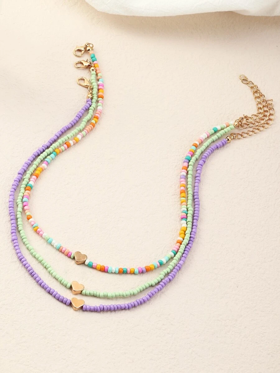 สร้อยคอ ลูกปัด ตกแต่ง หัวใจ 3 ชิ้น kk-48