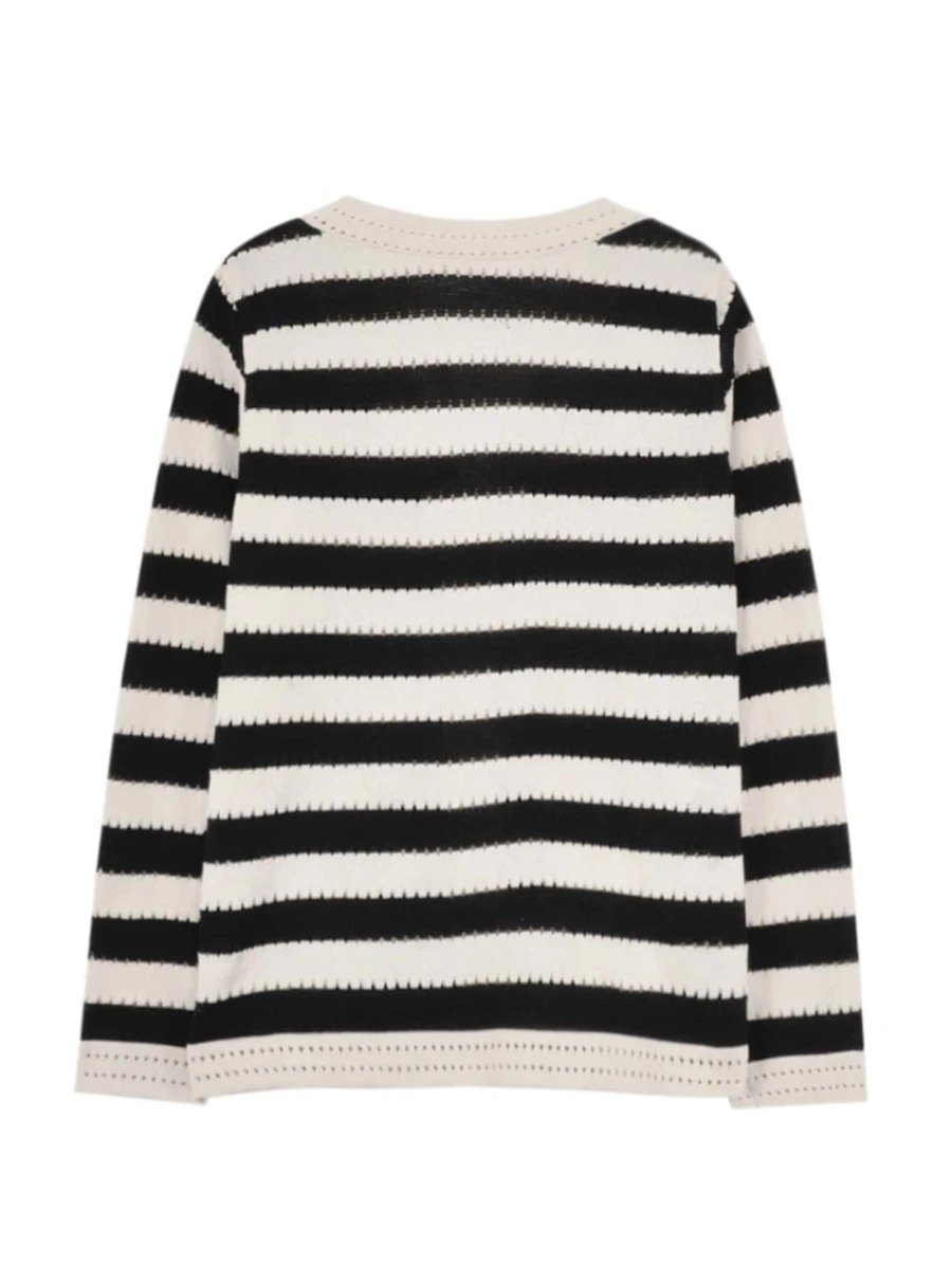 คาร์ดิแกน ลายทางเย็บ ปะติดปะต่อ กระดุมแถวหน้า i-69