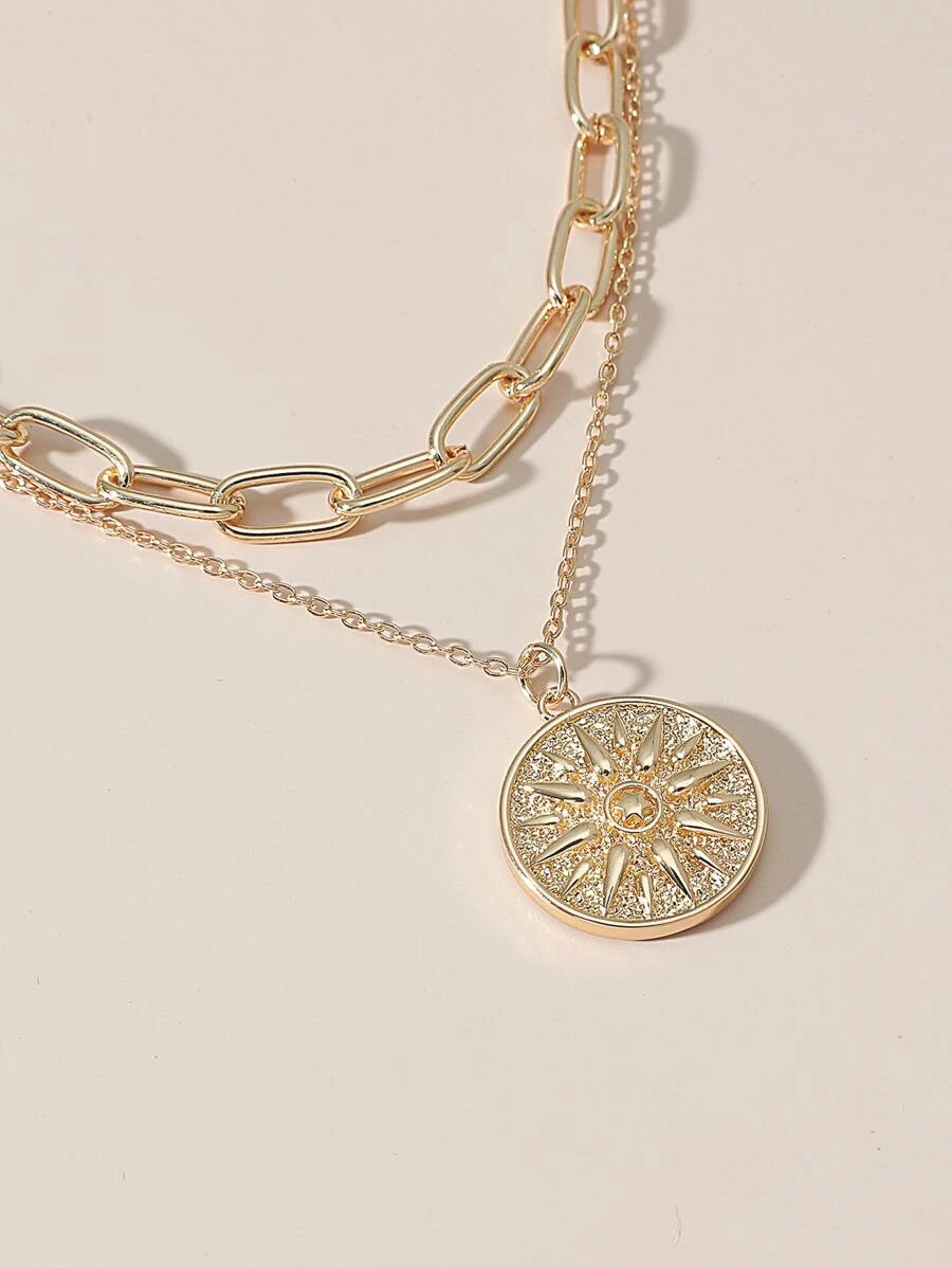สร้อยคอ ลายพระอาทิตย์ จี้ทรงกลม ไล่ชั้น kk-137