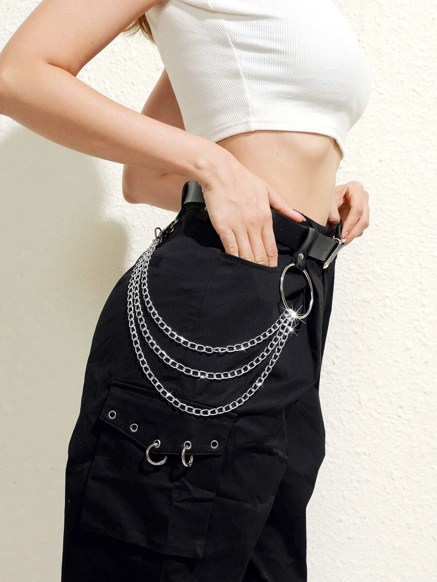 เข็มขัดบักเคิล แต่งโซ่ ทรงเหลี่ยม l-030