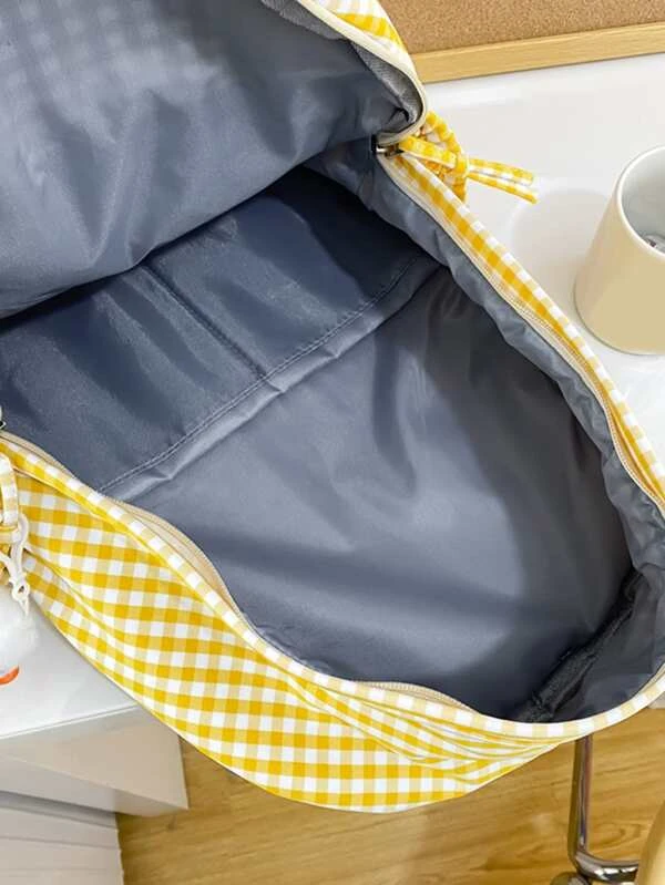 กระเป๋าเป้อเนกประสงค์ ลายกิงแฮม พร้อม จี้กระเป๋า ll-49