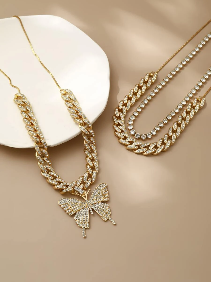 สร้อยคอ พลอยเทียม จี้ผีเสื้อ 3 ชิ้น kk-166