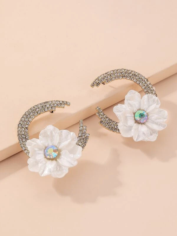 ต่างหูติดหู ตกแต่่งรูปดอกไม้ e-81