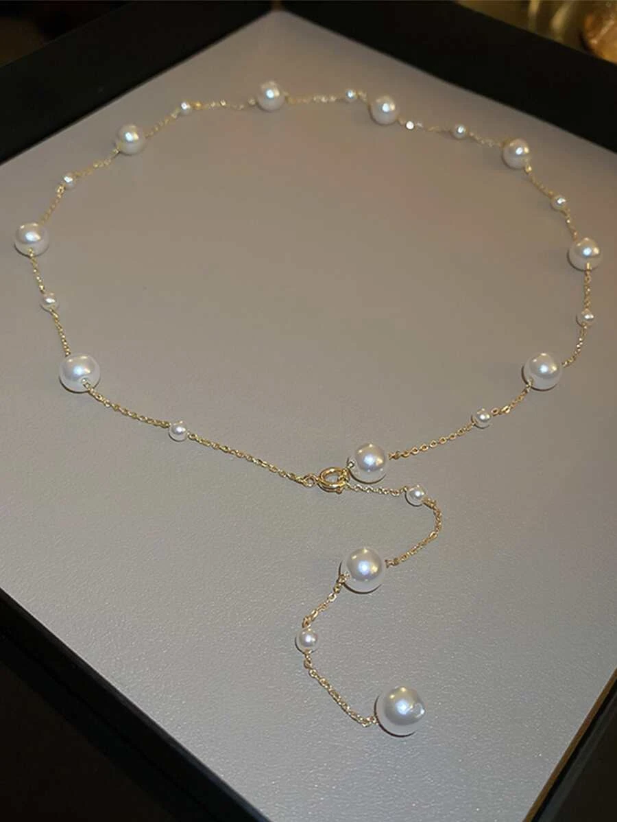 สร้อยคอ รูปตัว Y ประดับ มุกเทียม kk-14