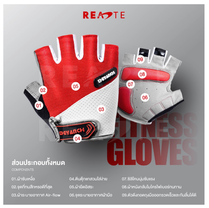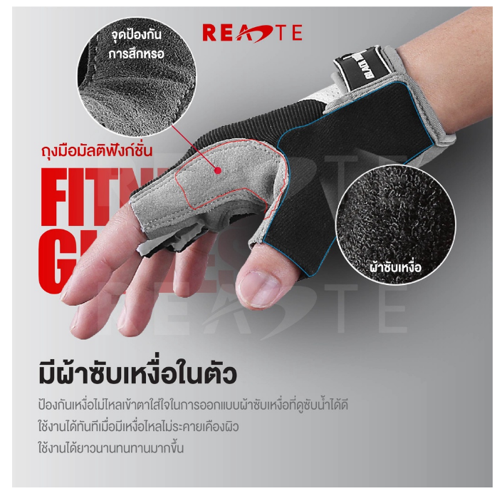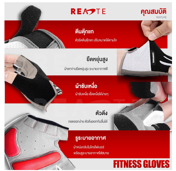 สินค้า : ถุงมือออกกำลังกาย แบบครึ่งนิ้ว GLOVES