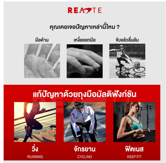 - ถุงมืออเนกประสงค์ ฟิตเนส ยกน้ำหนัก ปั่นจักรยาน