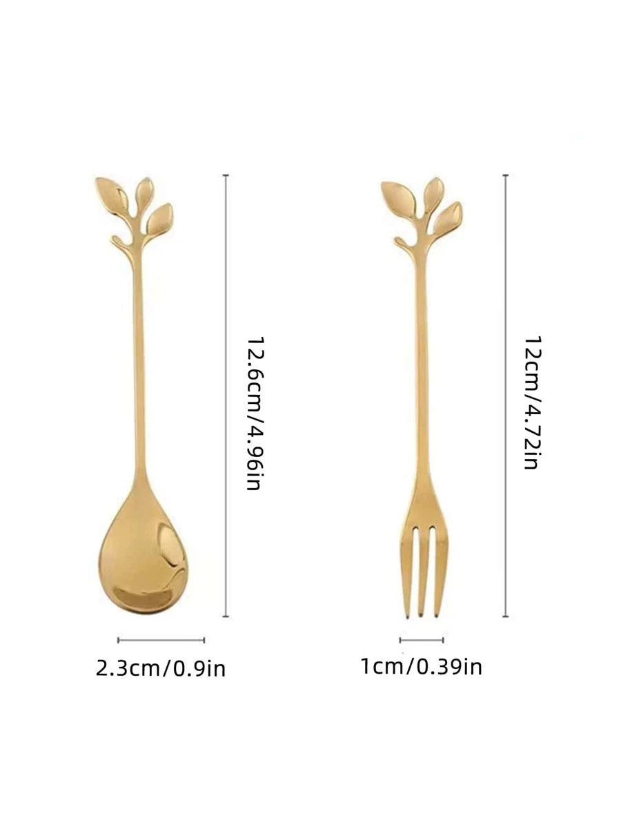 ช้อน 1 ชิ้น ลายใบไม้ หลากสี และ ส้อม 1 ชิ้น hh-38