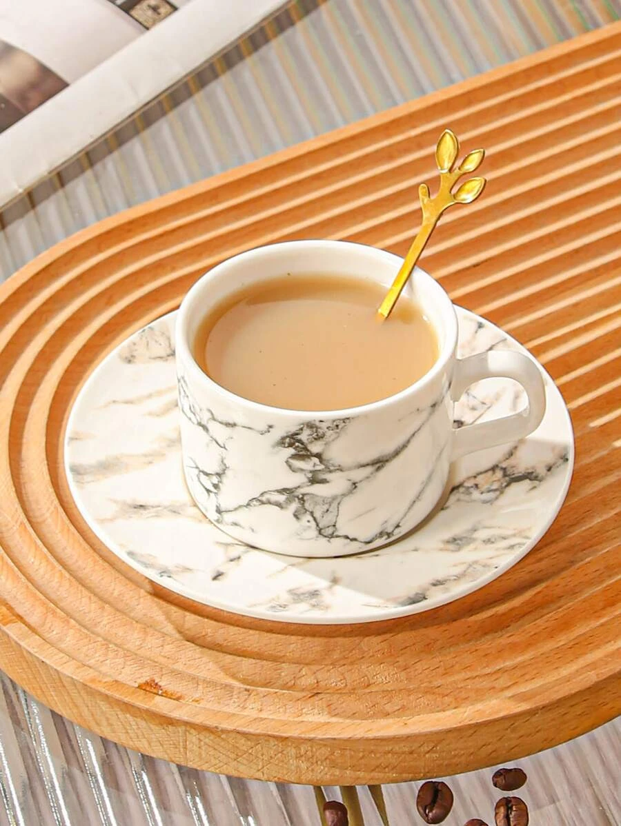 จาน 3 ชิ้น/เซต ลายคราม แก้วมัค และ ช้อน และ จาน สไตล์นอร์ดิก ลายหินอ่อน แก้วกาแฟ และ ช้อน สำหรับ บ้าน oo-166