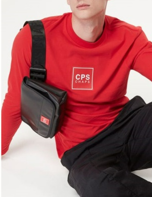 กระเป๋าสะพายข้างพร้อมสายสะพายปรับระดับได้ โลโก้ CPS CHAPS ที่ด้านหน้าและฝาปิดแบบปิด