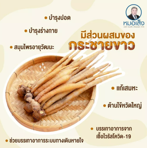 • โคยู-วันกระชายขาวและสมุนไพรอื่นๆ กว่า 20 ชนิด หมอเส็ง เช้า-เย็นครั้งละ 2 แคปซูล