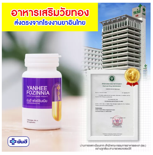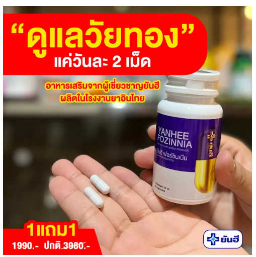 Product details of ✨1เเถม1 ของเเท้ ส่งไว✨ยันฮีวัยทอง YANHEE FOZINNIA ยันฮีฟอร์ซินเนีย วิตามินวัยทอง ผู้หญิงเเละชาย วัย40+ บรรจุ 30 แคปซูล/กระปุก