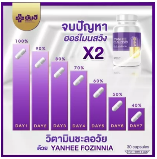 ส095 ✨1เเถม1 ของเเท้ ส่งไว✨ยันฮีวัยทอง YANHEE FOZINNIA ยันฮีฟอร์ซินเนีย วิตามินวัยทอง ผู้หญิงเเละชาย วัย40+ บรรจุ 30 แคปซูล/กระปุก