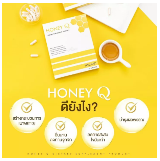 Specifications of Honey Q ของแท้100% อาหารเสริม ฮันนี่คิว Honey q slim เผาผลาญไขมัน บล๊อคไขมัน ดูแลรูปร่าง โปร 3 กล่อง❗❗ -Unicorn Beauty Shop