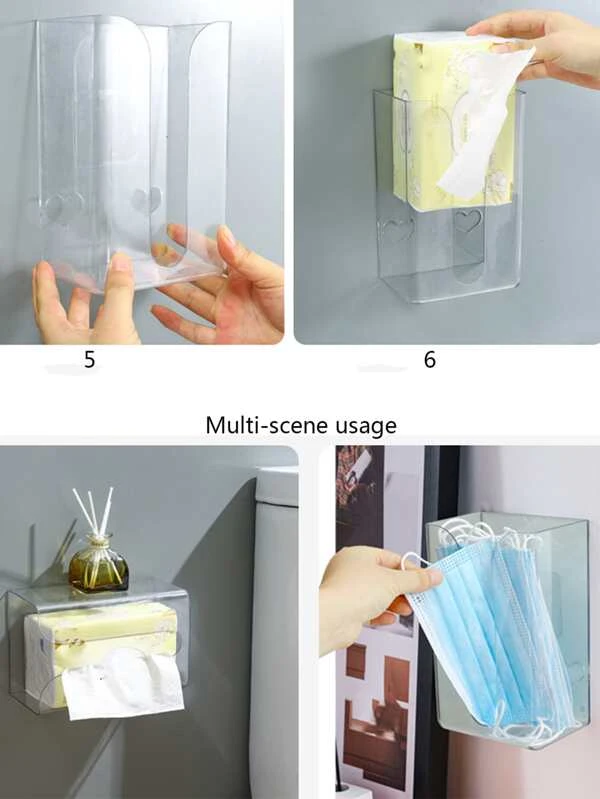 1 ชิ้น พลาสติก เนื้อเยื่อ จัดเก็บ โปร่งใส ติดผนัง ไม่ต้องพันช์ กล่องทิชชู่ ผ้าคลุม ที่วาง สำหรับ บ้าน nn-8