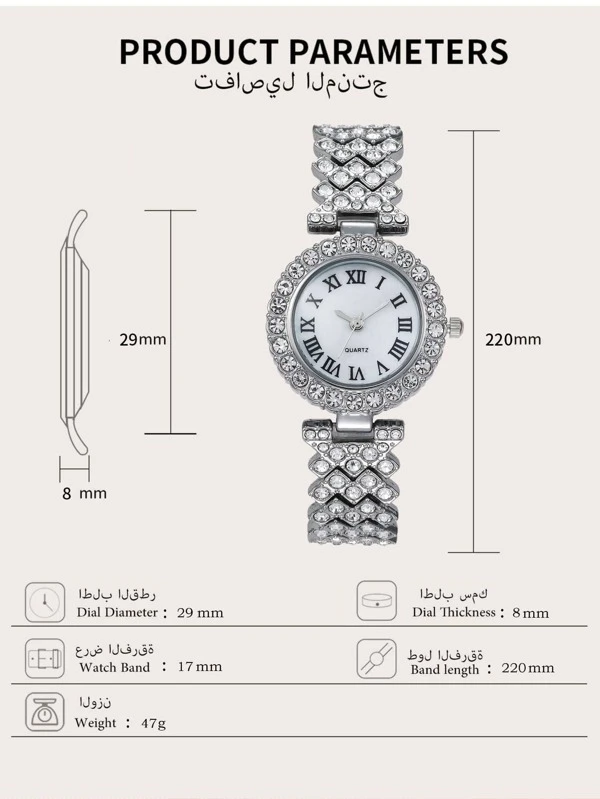 1 ชิ้น ประดับแก้วสี นาฬิกาข้อมือ & 2 ชิ้น สร้อยข้อมือ น-0175