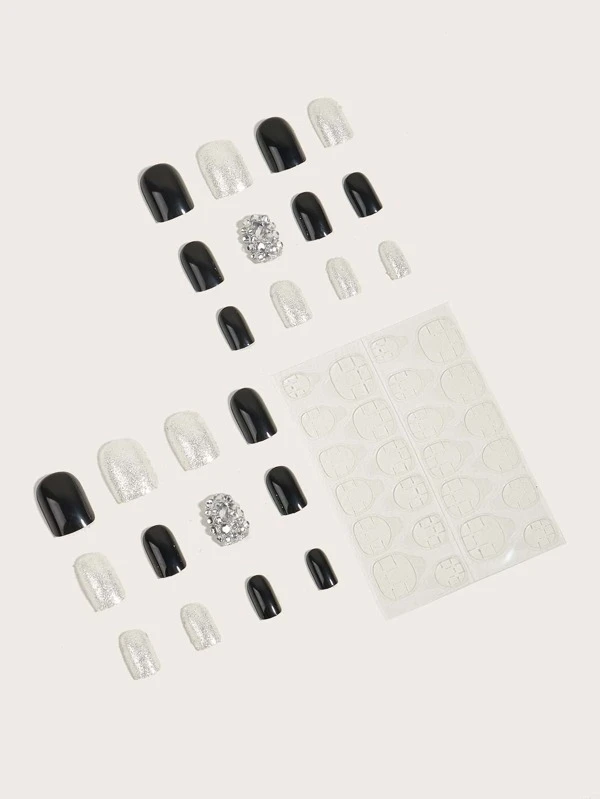 24 ชิ้น เล็บปลอม ทรงเหลี่ยม สั้น & ตะไบเล็บ 1 ชิ้น & เทป 1 แผ่น c-50