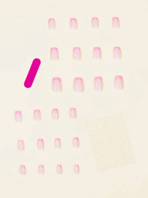 24 ชิ้น เล็บปลอม ทรงเหลี่ยม ยาว & ตะไบเล็บ 1 ชิ้น & เทป 1 แผ่น c-29