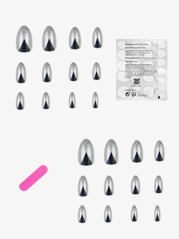 24 ชิ้น ยาว เล็บปลอม ทรงอัลมอนด์ & ตะไบเล็บ 1 ชิ้น & 1 แผ่น แถบสาย c-80