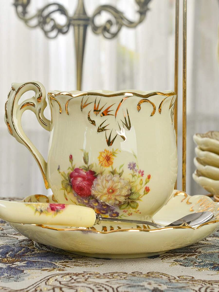 3 ชิ้น/เซ็ต ลาย ดอกไม้ แก้วมัค & ช้อน & ทันสมัย แก้วกาแฟ & ช้อน & จาน สำหรับ บ้าน oo-182