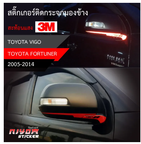 ข้อมูลเฉพาะของ สติ๊กเกอร์ติดสะท้อนแสง 3M กระจกมองข้าง TOYOTA อุปกรณ์แต่งรถ รถยนต์ รถกระบะ วีโก้ เฟอร์จูนเนอร์ vigo Fortuner (2005-2014)Car Stickers