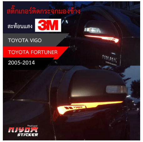 สติ๊กเกอร์ติดรถ 3m สะท้อนแสง TOYOTA ติดกระจกมองข้าง ซ้าย-ขวาเป็นสติ๊กเกอร์สำหรับภายนอกโดยเฉพาะ ตัดประกอบโดยช่าง สีไม่ลอก 100% เพราะไม่ใช่งานพิมพ์ทนต่อการขีดข่วน ล้างรถ หรือสารเคมีอื่นๆ ทนความร้อนได้สูงโดยไม่ยืด กาวไม่เยิ้มใช้สติ๊กเกอร์ติดรถอย่างดี เกรดพรีเมี่ยมใช้ติดเพื่อความสวยงามของยานยนต์เป็นสติ๊กเกอร์สะท้อนแสง 3m กันแดด กันน้ำ 100%